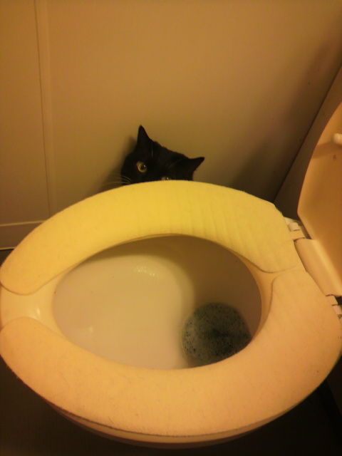 そうすると、確かに便座に腰掛けると「ヒヤッ!」としてしまいますが、自分の家の場合は上記写真の様な吸着タイプの便座シートを活用しています。