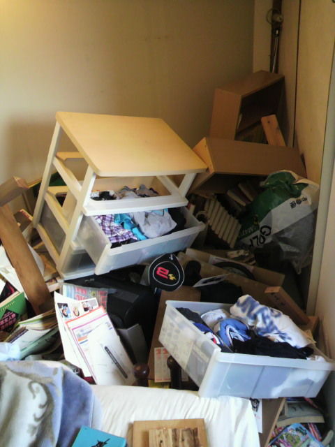 ↓の写真は今回の地震で崩れてしまった自宅本棚と服入れです。