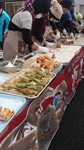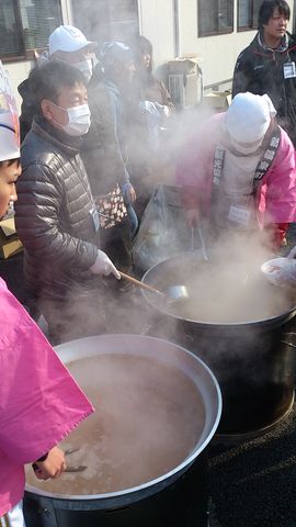 その頑張りもあり、一番遠くの仮設からも沢山のお住まいの方たちが来て頂き、カニ汁・磯辺揚げ・白玉団子それぞれ約300食分ほぼ全てお配りするコトが出来ました。