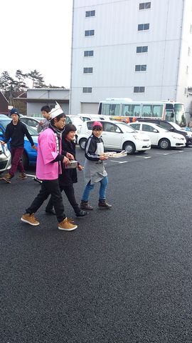 私が戻ってくる子ども達に「どうだった!?」とそれぞれ聞くと、仮設の皆さんはお家に入れてくれてみかんを御馳走になったり、お菓子を頂いたりと、逆に子ども達をねぎらってくれて、震災当時のお話をしてくれたり、ご家族が津波でお亡くなりになってしまったお話などを聞きいたみたいで、皆とても神妙な顔つきになっていたのがとても印象的でした。